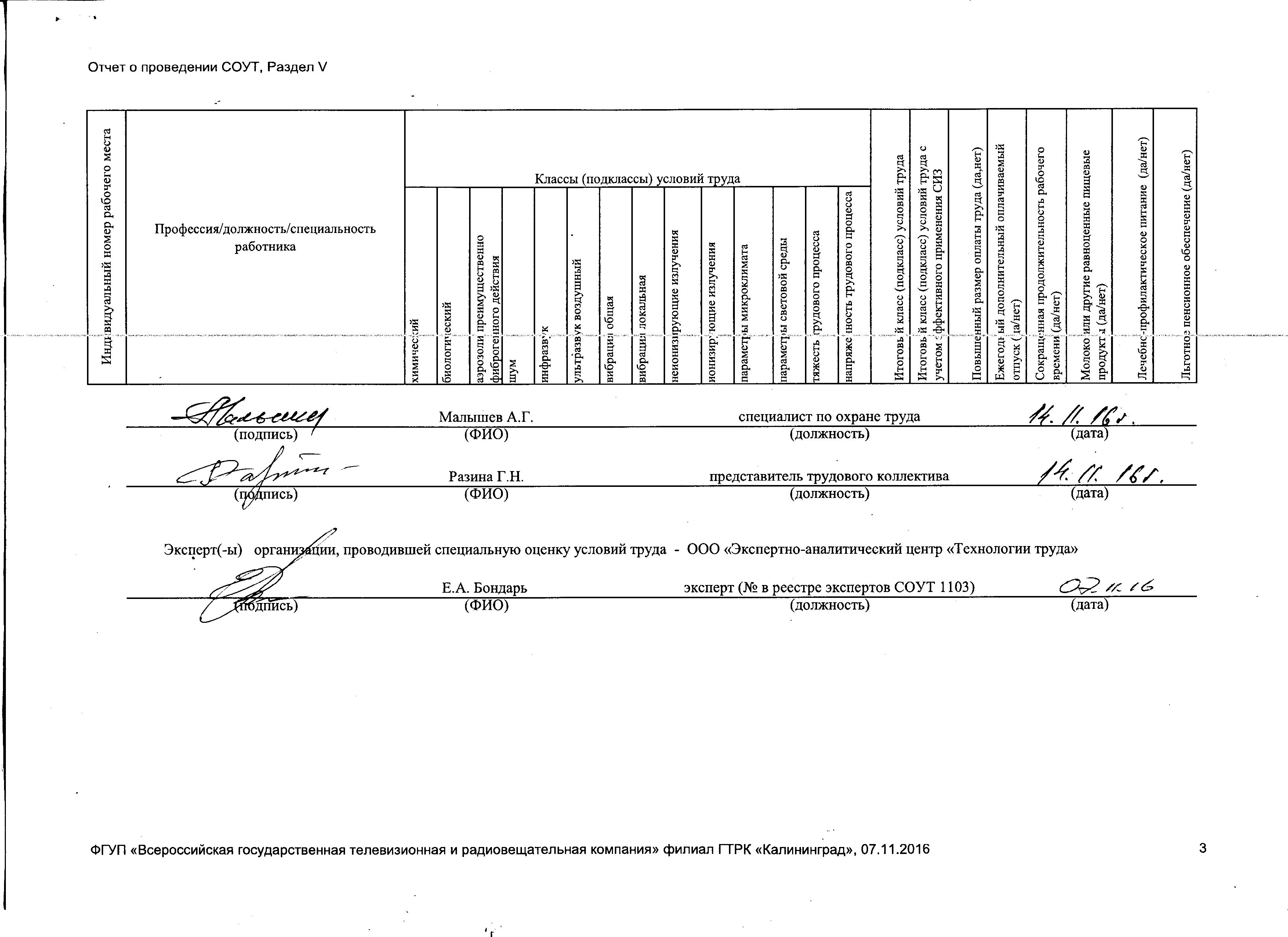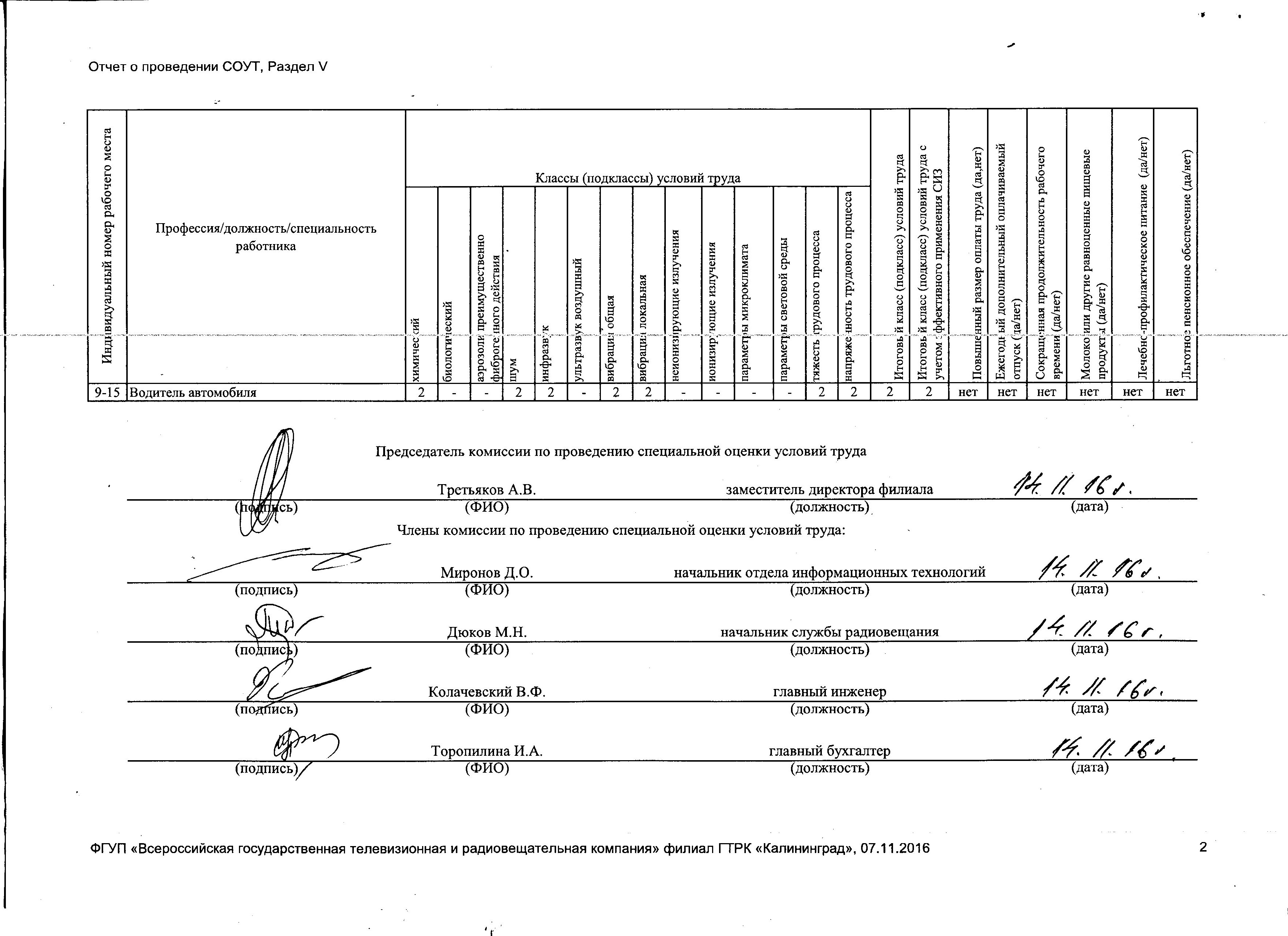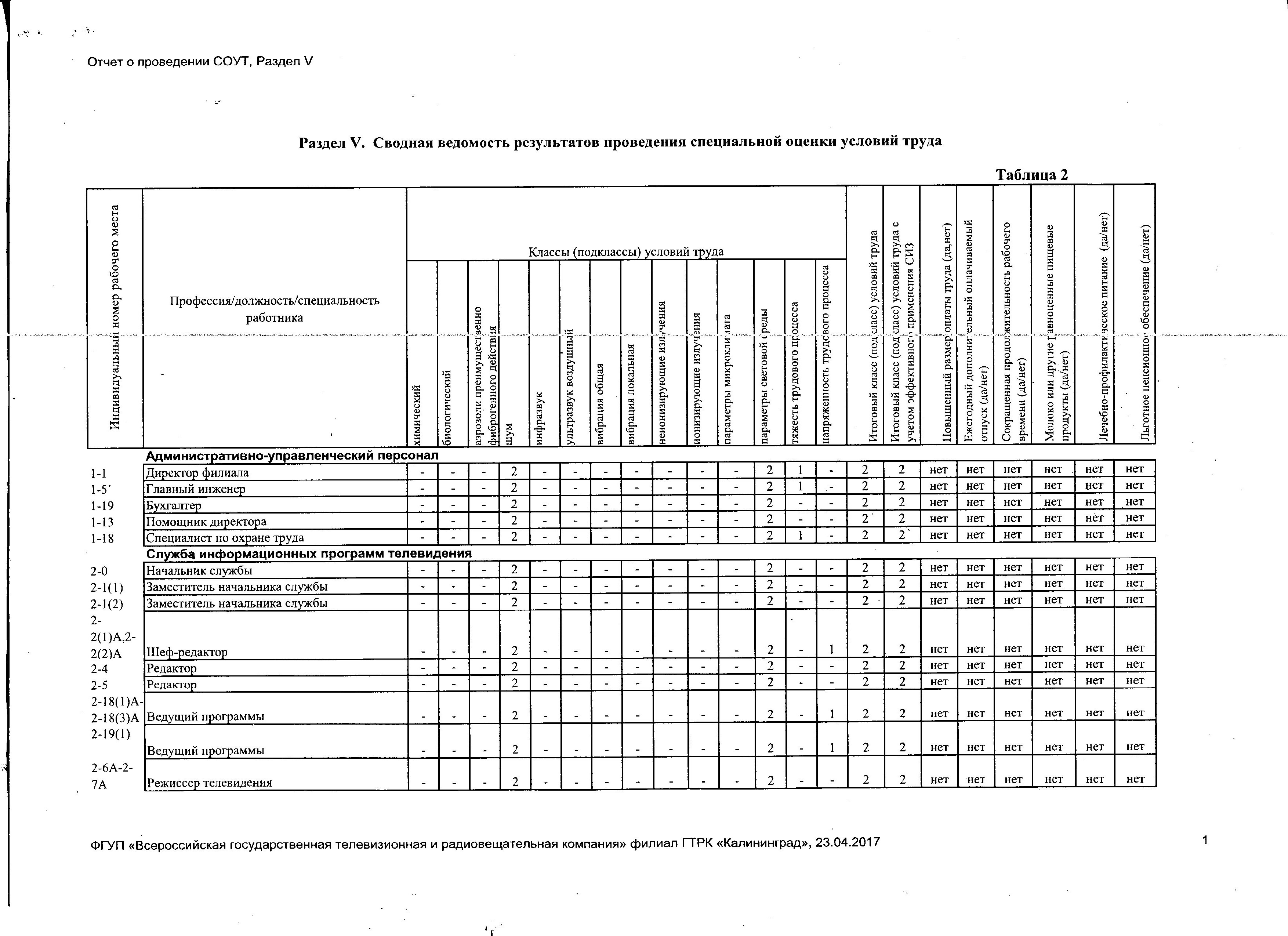 Сводная ведомость результатов проведения СОУТ