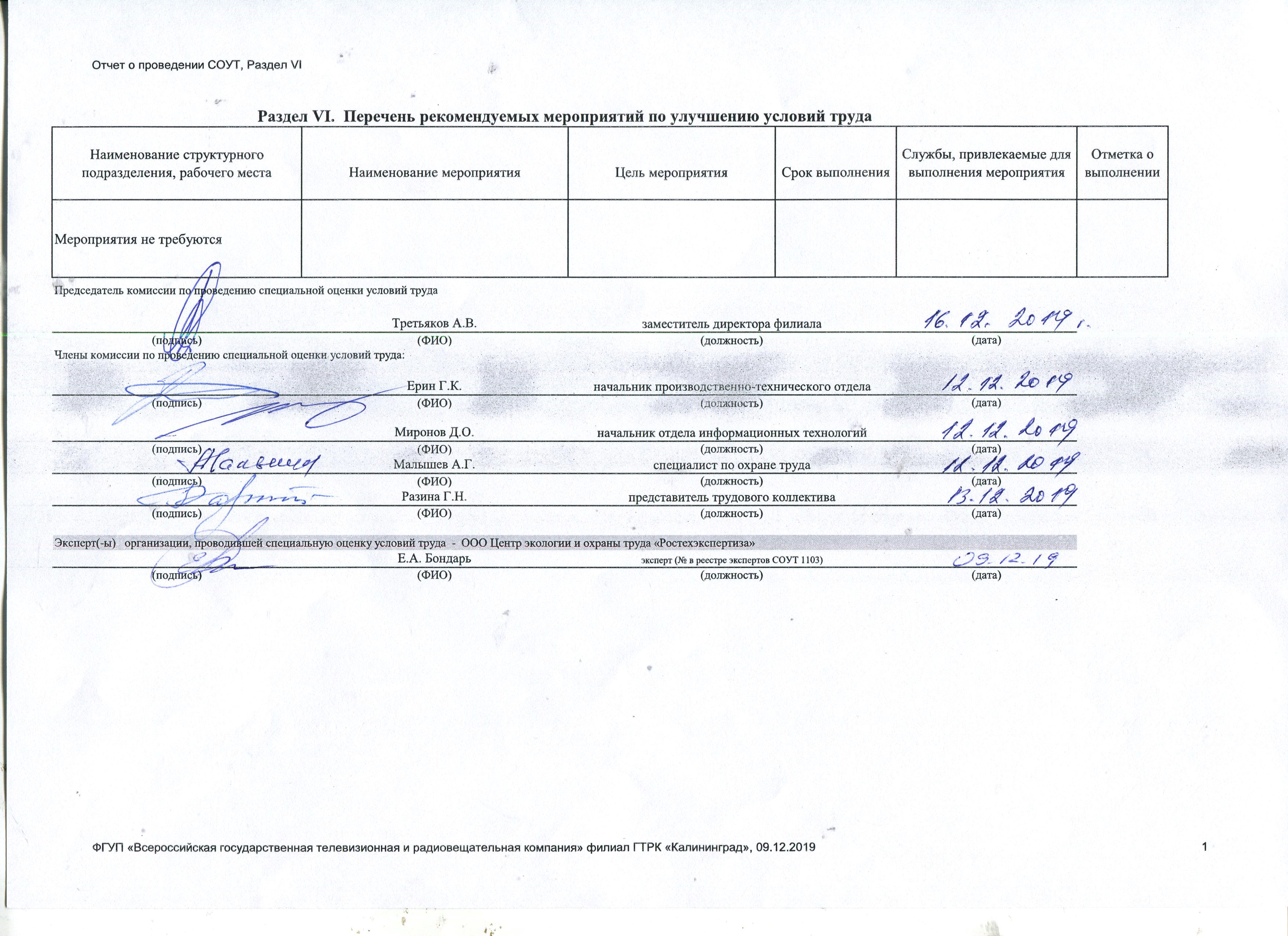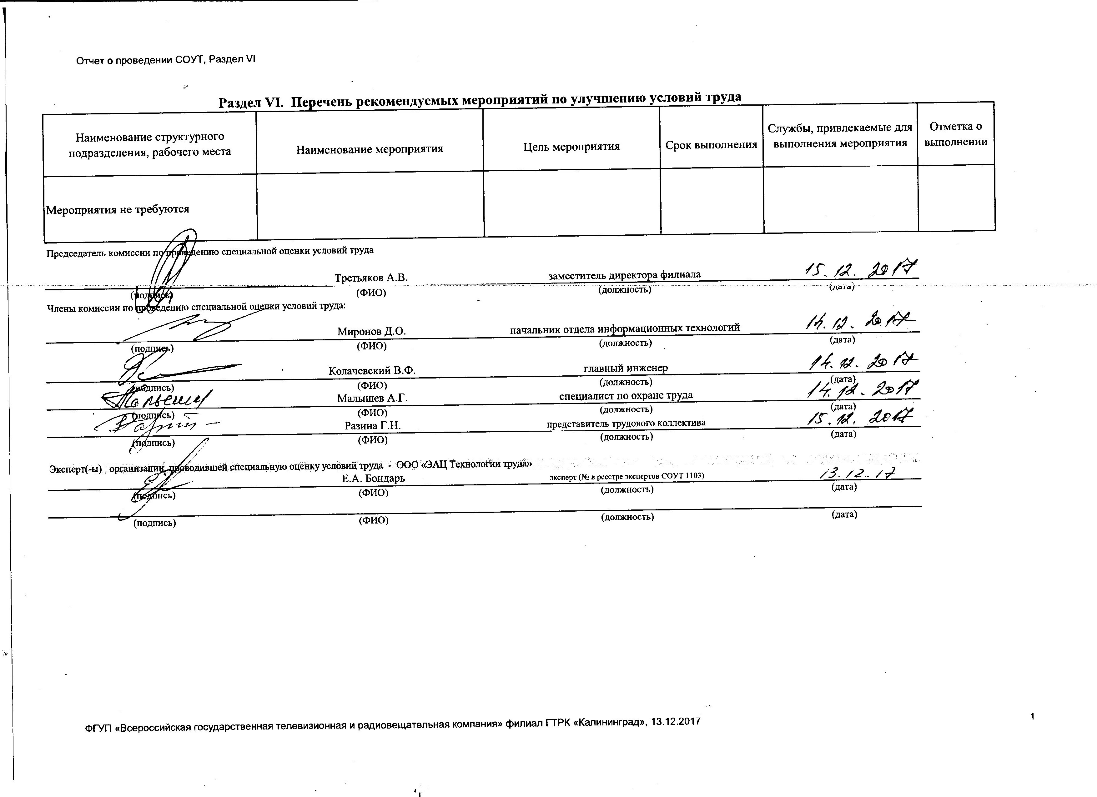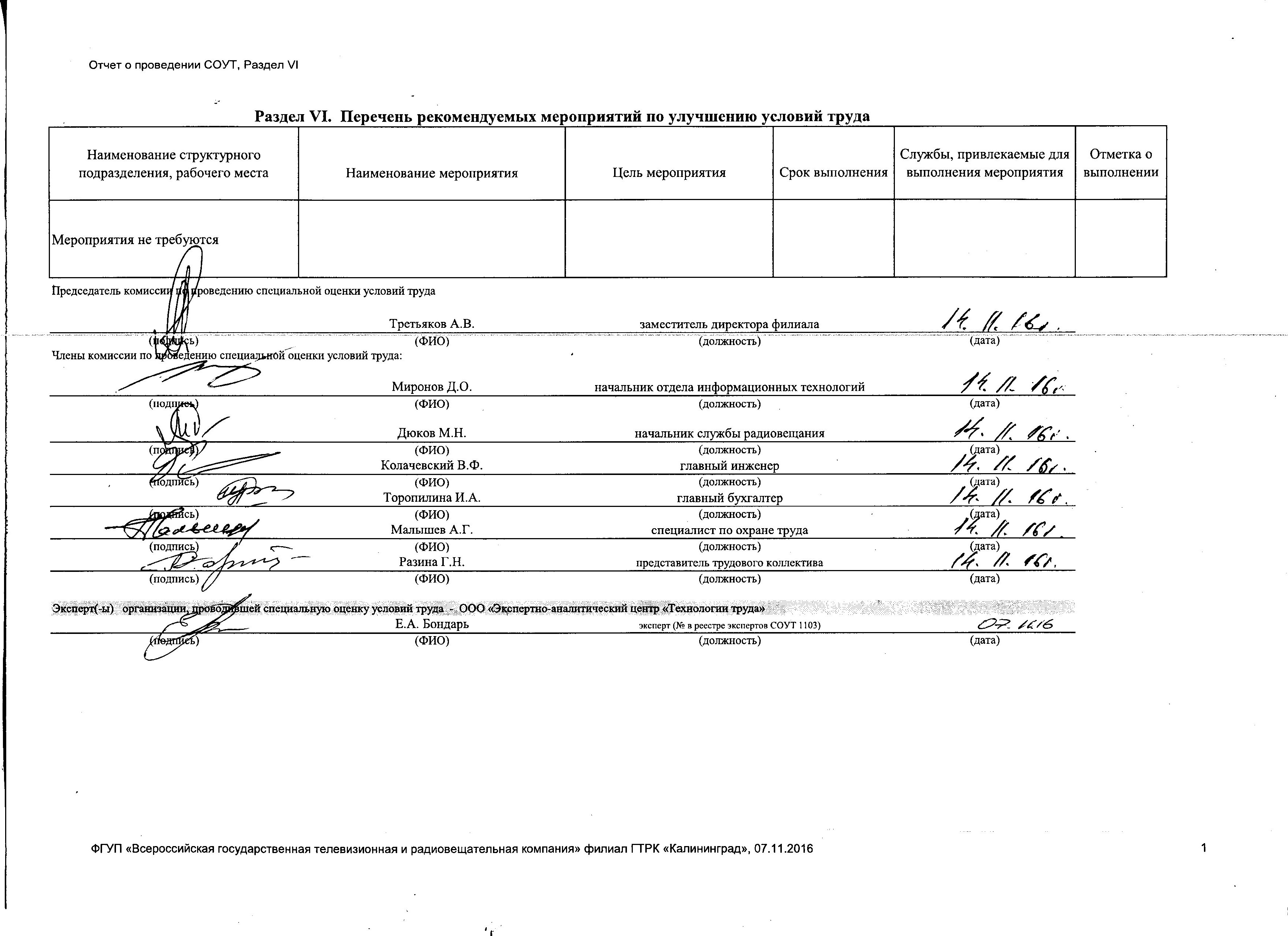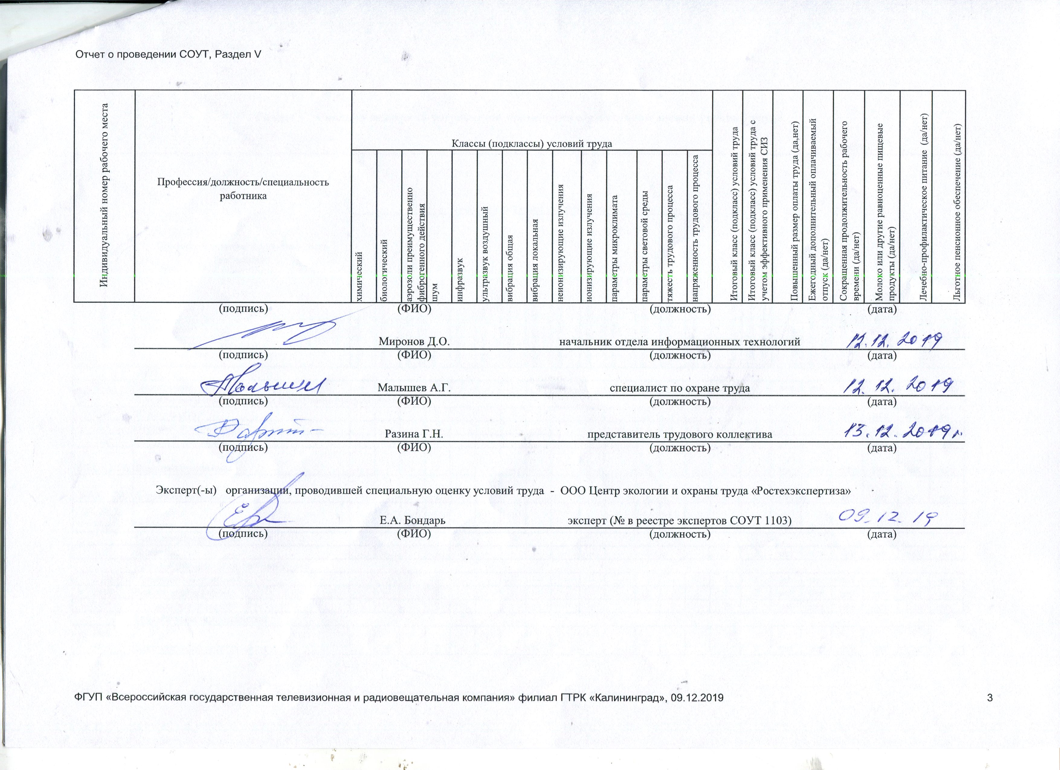Сводная ведомость результатов проведения СОУТ