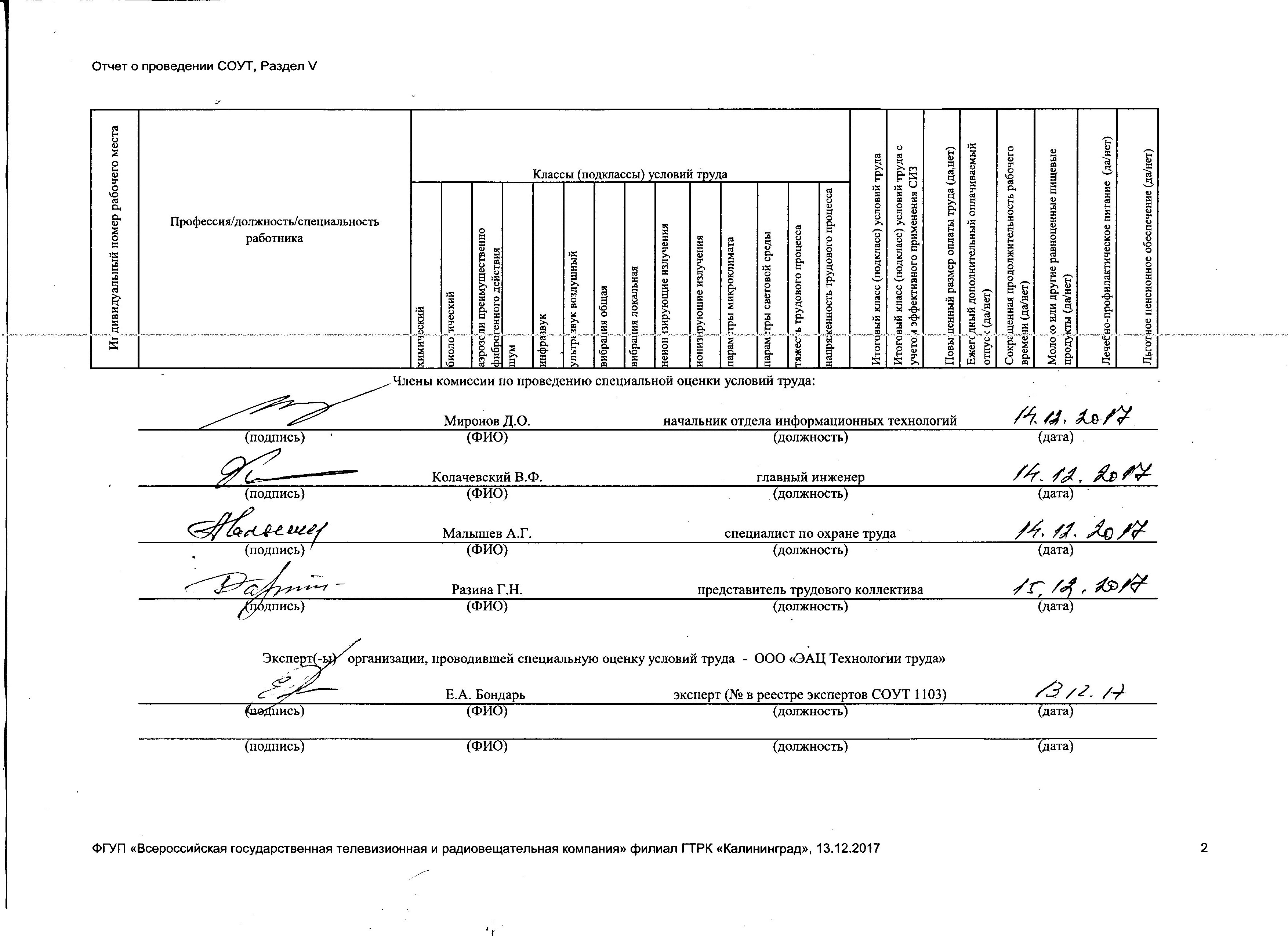 Результаты проведения специальной оценки условий труда