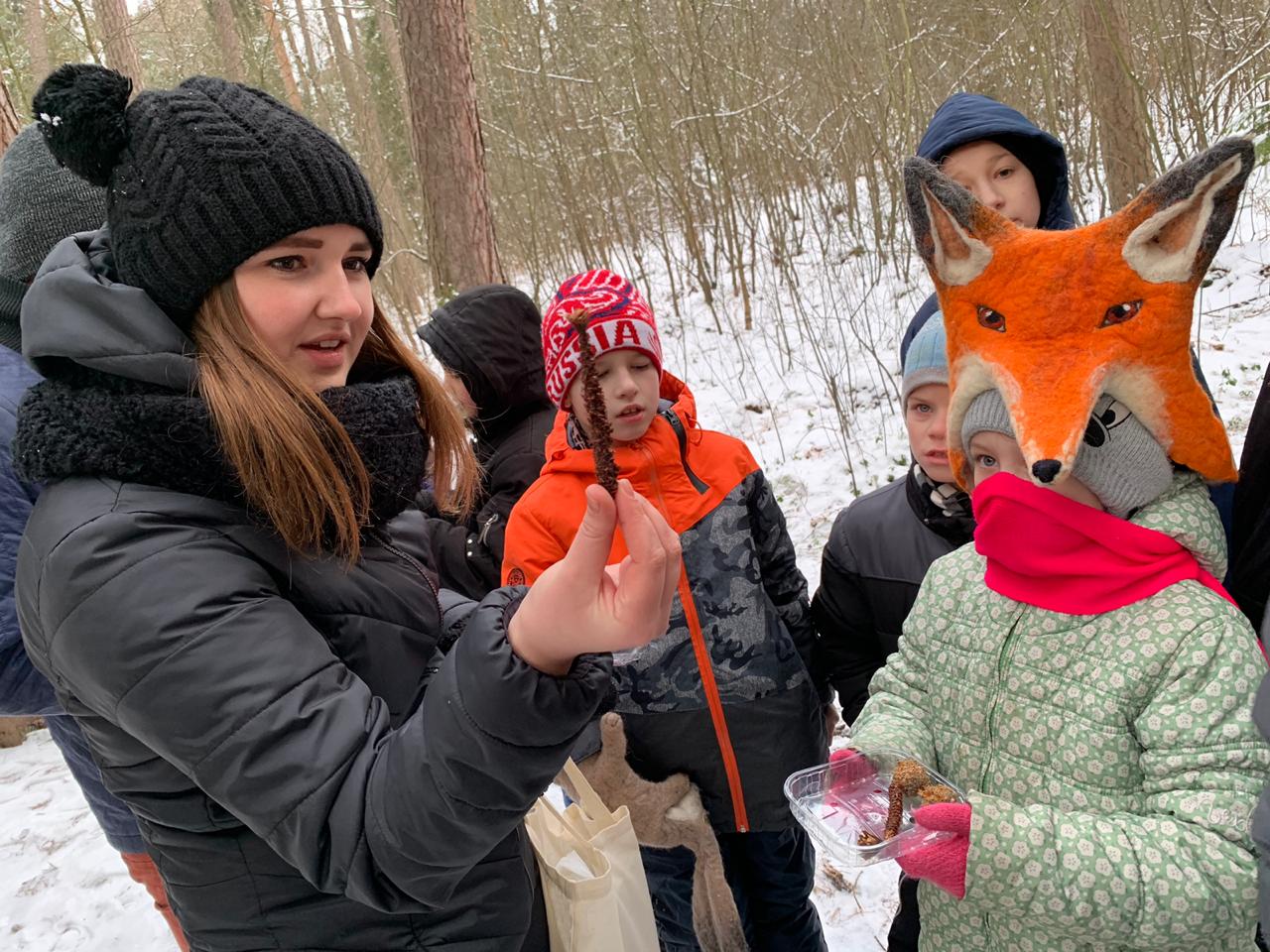 В интерактивной экскурсии приняли участие 18 детей. Специалист отдела экологического просвещения и туризма национального парка «Куршская коса» Екатерина Марус провела детей по тропе «Королевский бор». Ребятам рассказали о том, какие животные обитают в национальном парке, чем питаются и как сотрудники парка подкармливают их зимой.