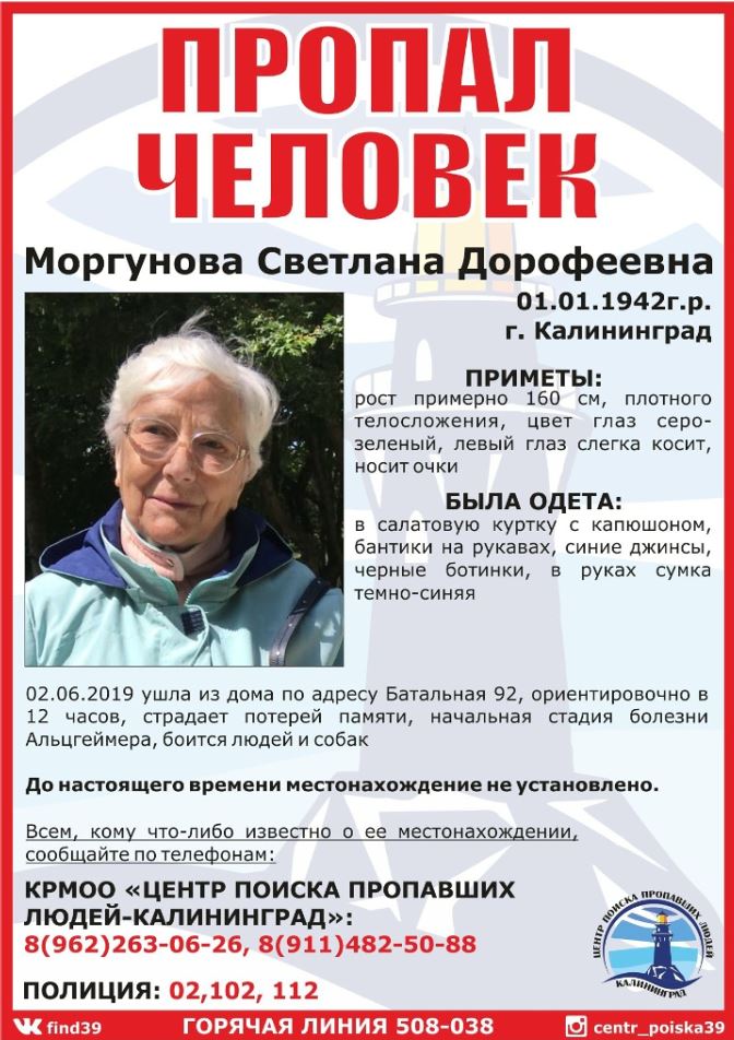 Светлана Дорофеевна ушла из дома на улице Батальной позавчера днём и пропала. Всех видевших женщину в эти дни просят сообщить в центр поиска пропавших людей или в полицию по номеру 02.